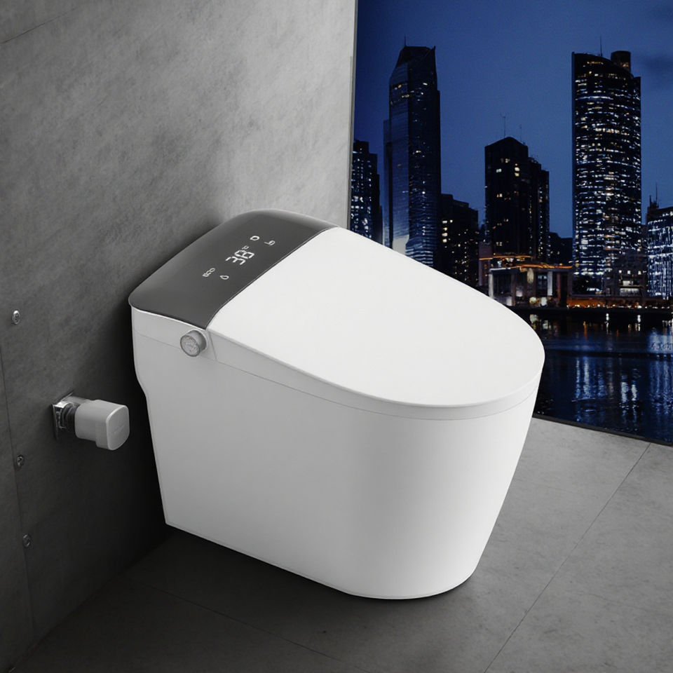 Advanced Porcelain Smart Toilet Bowl Set Elongated Water Closet with Remote Control Function Floor-Mounted for Bathroom