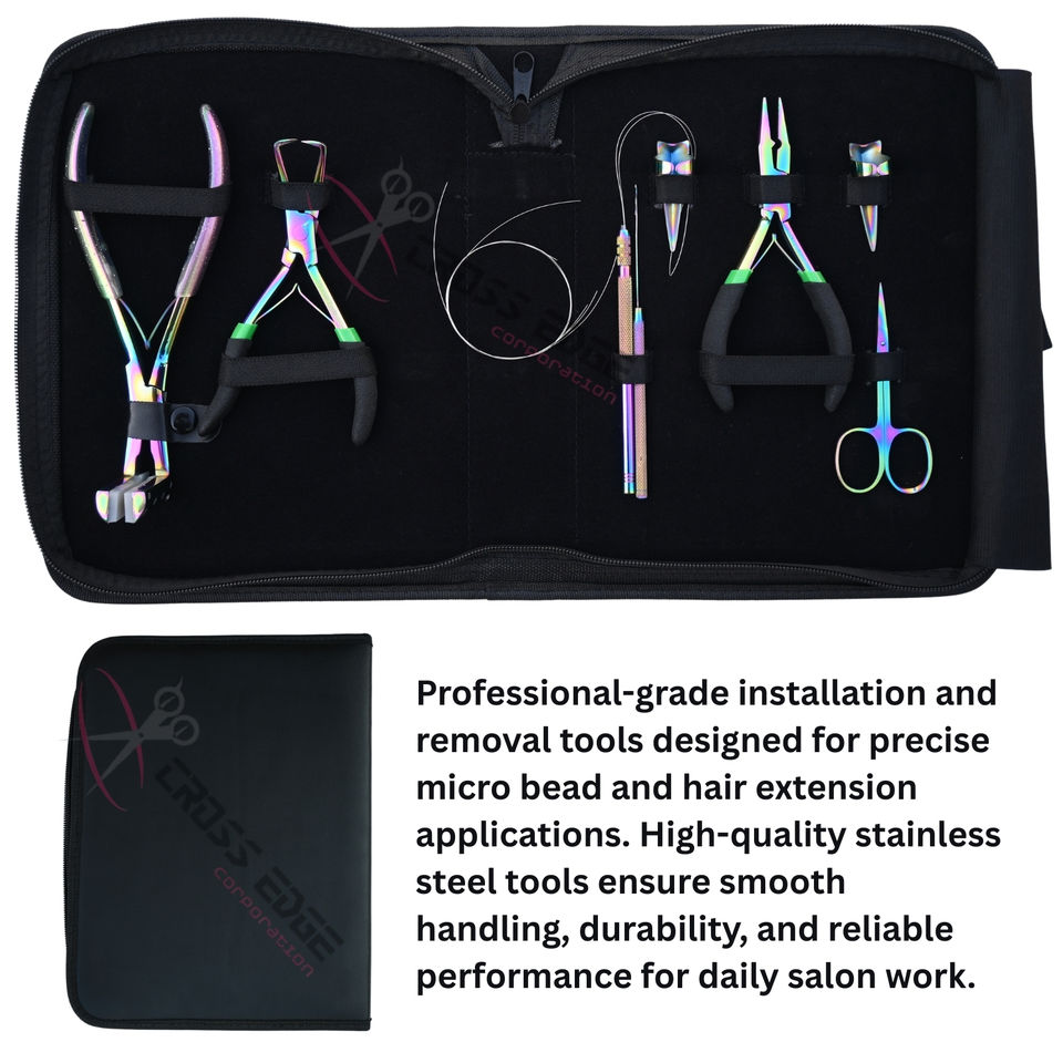 Kit de pinces professionnelles pour extensions capillaires arc-en-ciel avec pince à micro-perles, ciseaux et outils d'installation pour extensions à bandes adhésives en salon