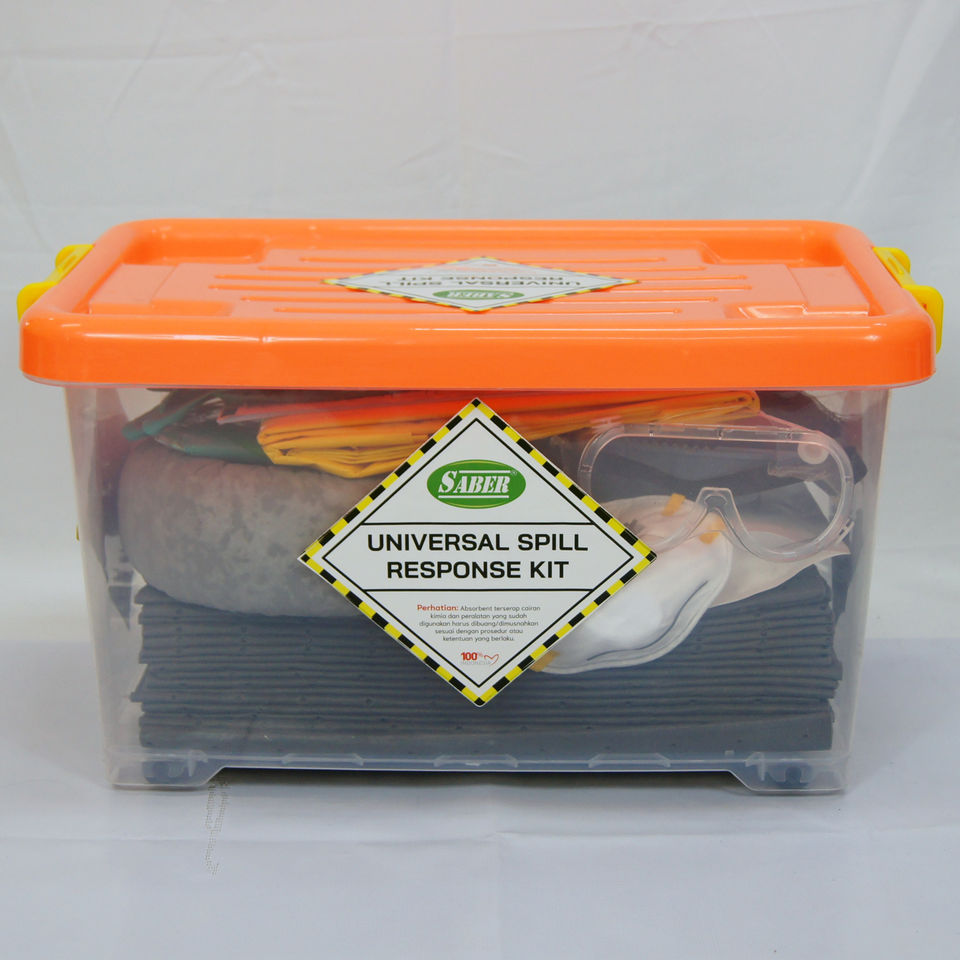 Kit anti-déversement universel Advanced SABER 20 litres avec boîte transparente, robuste et universel pour la protection des drains et les événements en petites pièces