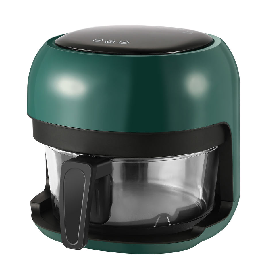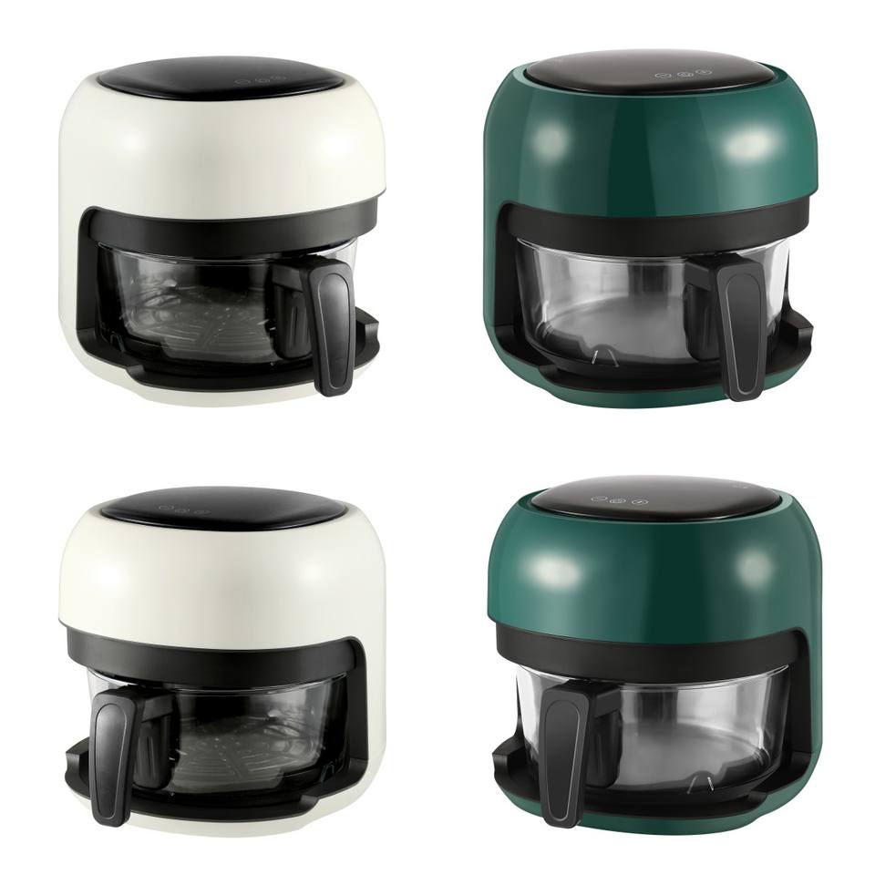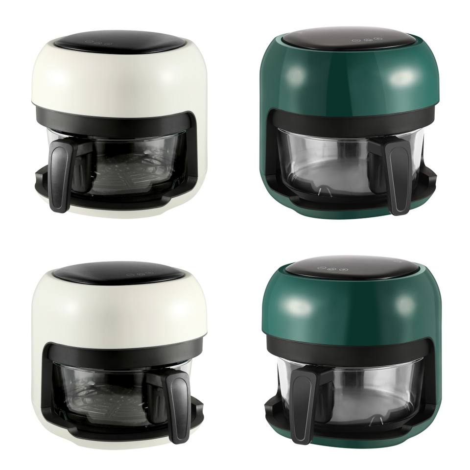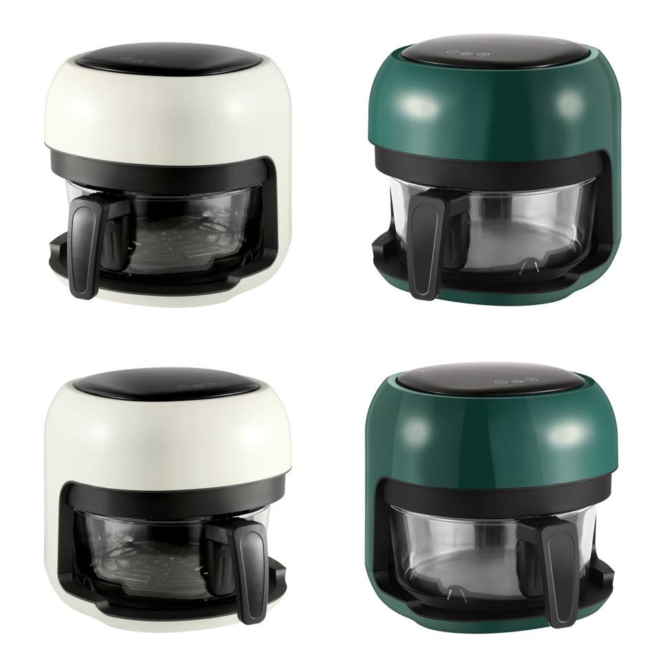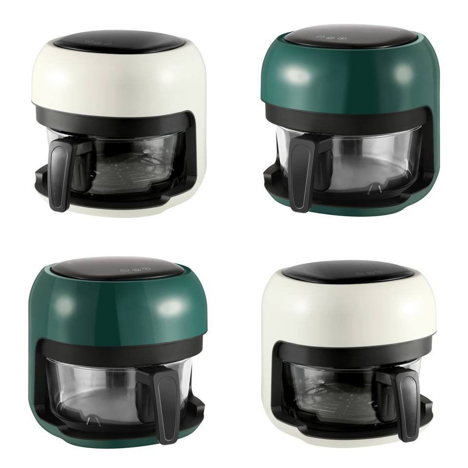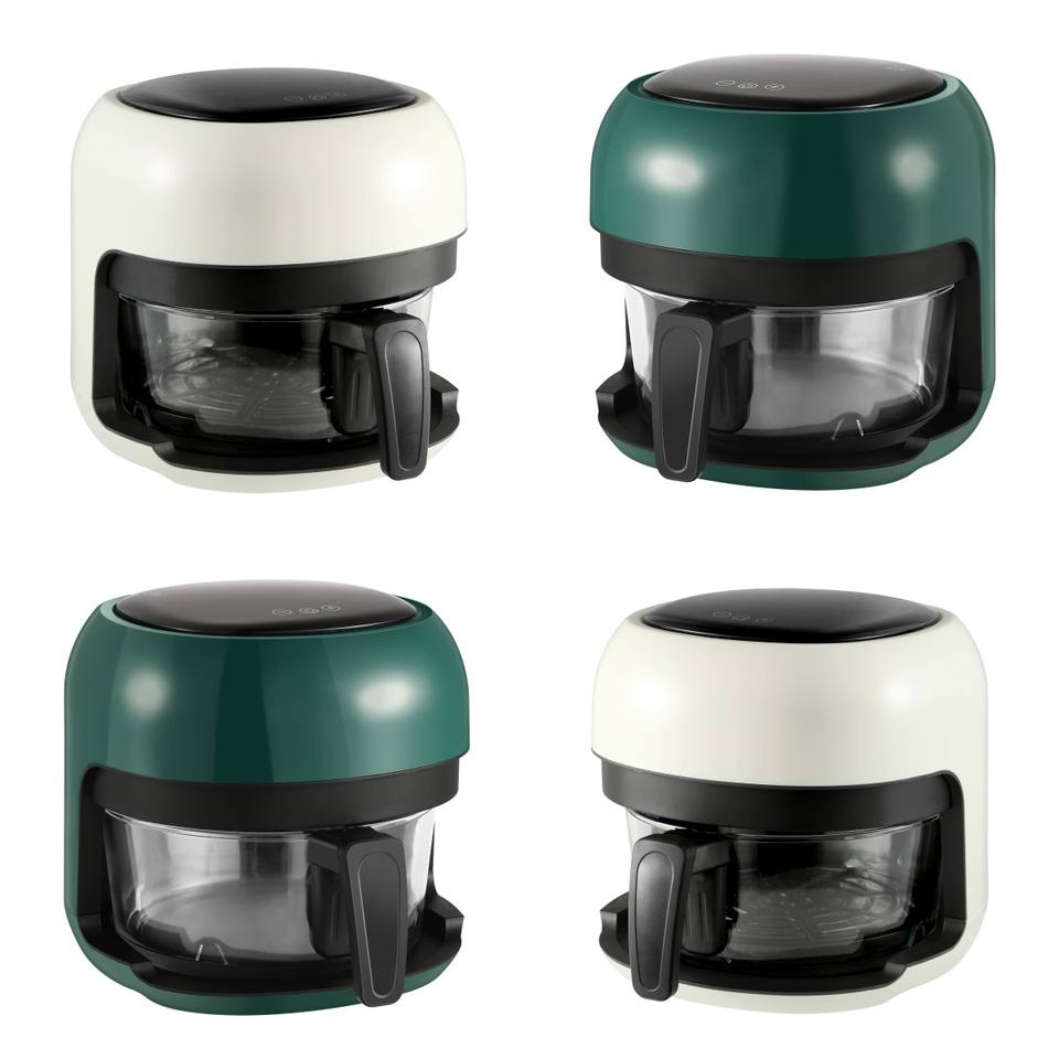 Friteuse à air intelligente avancée, dernière technologie, grille-pain, friteuse à air chaud de forme ronde pour une friture sans huile avec du verre de qualité alimentaire