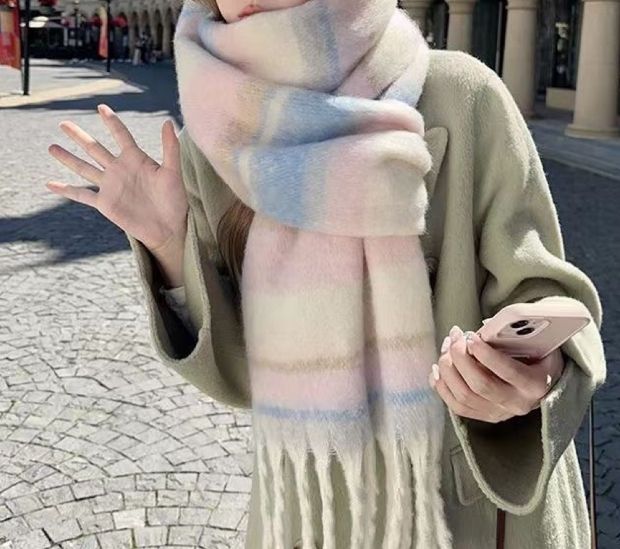 Écharpe étudiante chaude et épaisse à blocage de couleur avancé pour femme en hiver