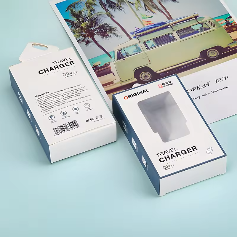 Boîte de chargeur en papier mat de couleur, gaufrée, sur mesure ODM, emballage électronique adapté aux chargeurs muraux PD