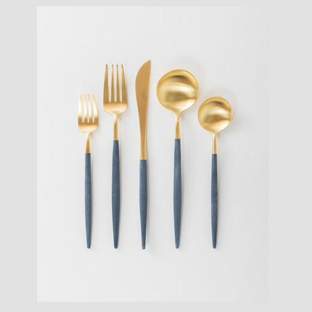 Ensemble de couverts exclusif de qualité supérieure en laiton doré et bleu pour mariage et fête