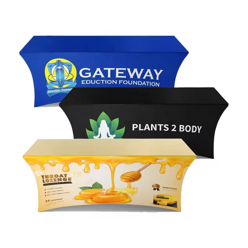 Nappe ronde de couverture de barre publicitaire pour la décoration de mariage d'événement fête Polyester Stretch Spandex nappe personnalisée avec Logo