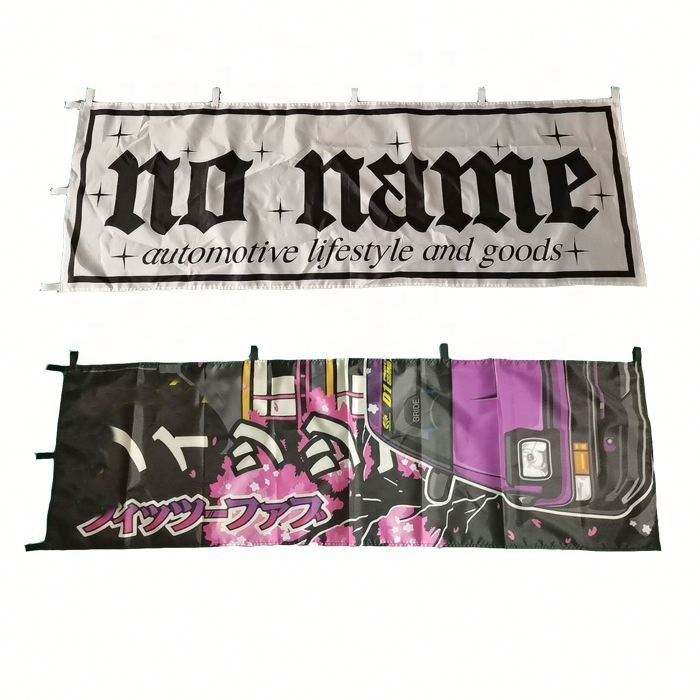 Drapeau publicitaire personnalisé Nabori pour course automobile, conception couleur intégrale, 100 % polyester, drapeaux Nobori avec impression de logo personnalisé