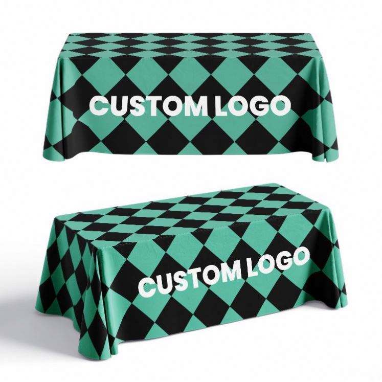 Nappe publicitaire en tissu polyester, design ajusté, 6 pieds, 8 pieds, impression de logo personnalisé, housse de table pour événements professionnels, salons commerciaux