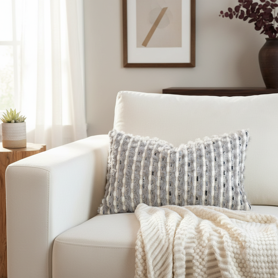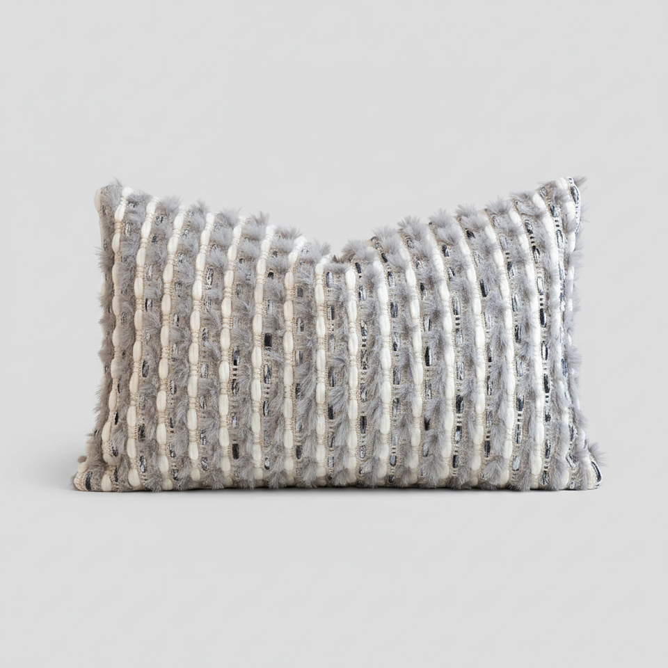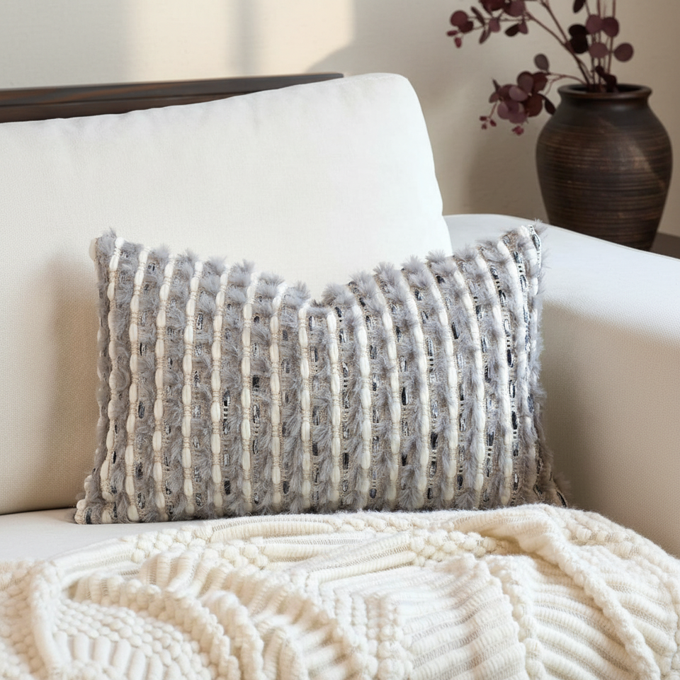 Housse de coussin rectangulaire Aeckself faite à la main 12x20 pouces, style bohème, en chenille tuftée, neutre, décorative, pour coussin lombaire