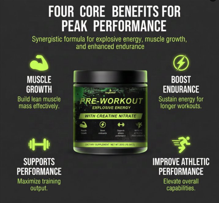 Poudre pré-entraînement AegleWell avec créatine nitrate, énergie explosive, amélioration de l'endurance, soutien à la croissance musculaire et aux performances athlétiques