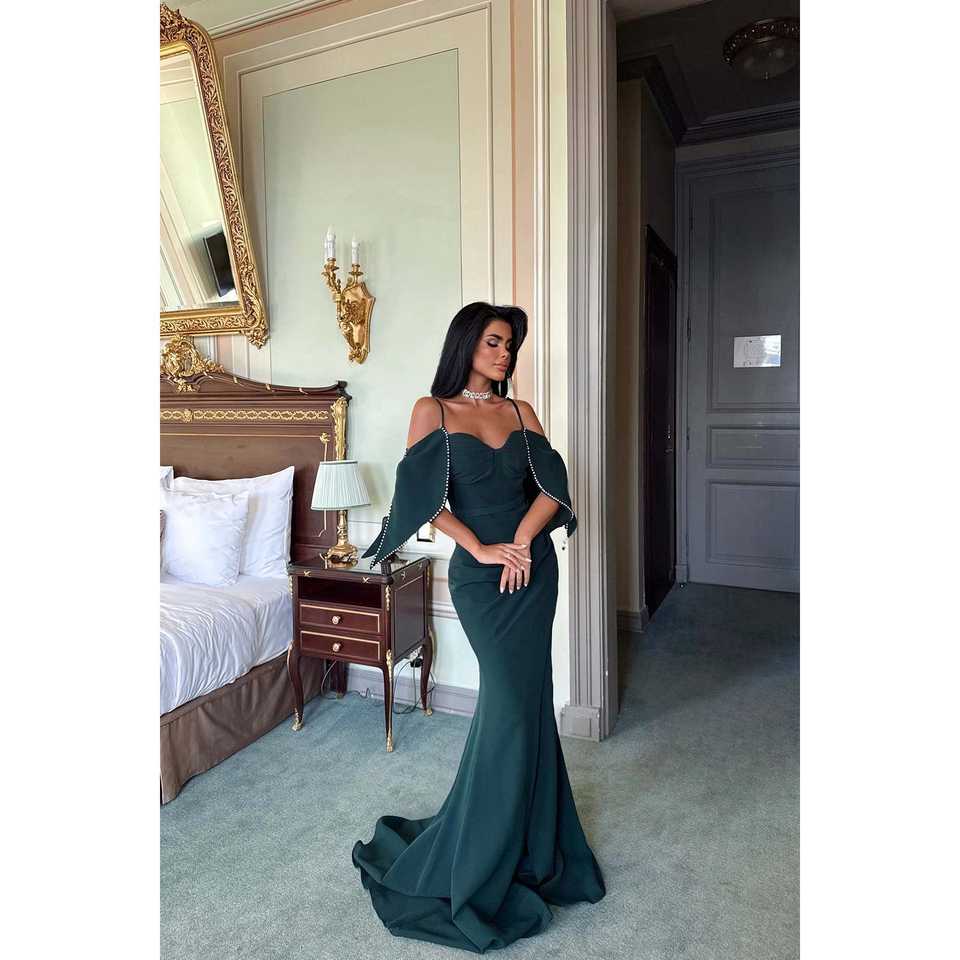 Robe de soirée sirène à col haut, robe de bal formelle, perles, fleurs, plumes décoratives, taille XS, longue robe de soirée pour femmes