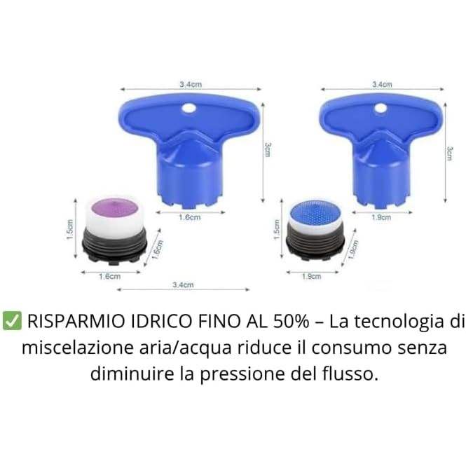 Robinet Aérateur Économiseur d'Eau 1.8 GPM Design Minimaliste pour Lavabo et Cuisine avec 4 Commandes Fabriqué en Italie S.C. E COMMERCE