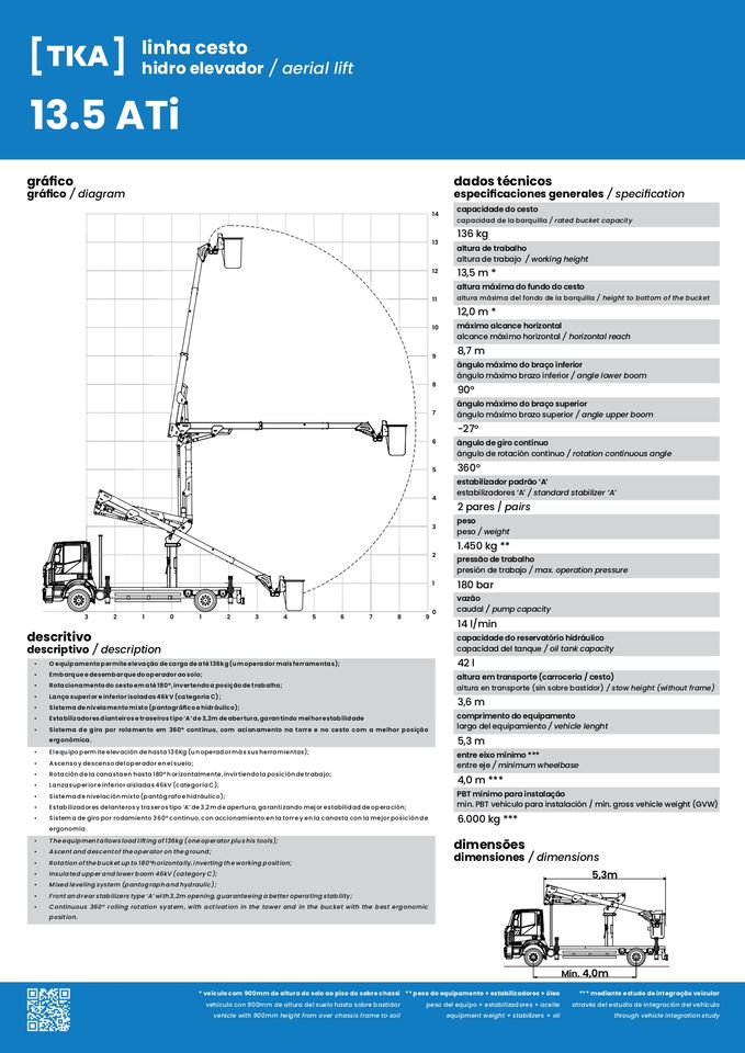 Plateforme élévatrice articulée TKA CA13.5 ATI - Portée de 13,5 mètres Modèle de plateforme élévatrice articulée TKA CA13.5 ATI Panier simple 46Kv - PRIX SUR DEMANDE