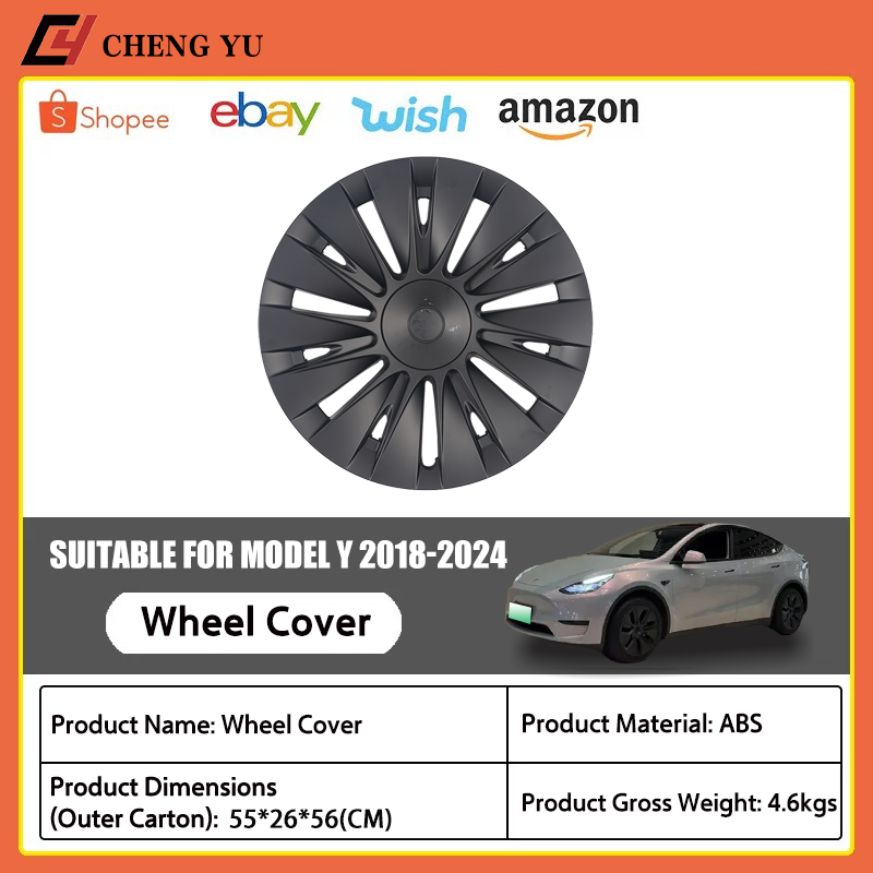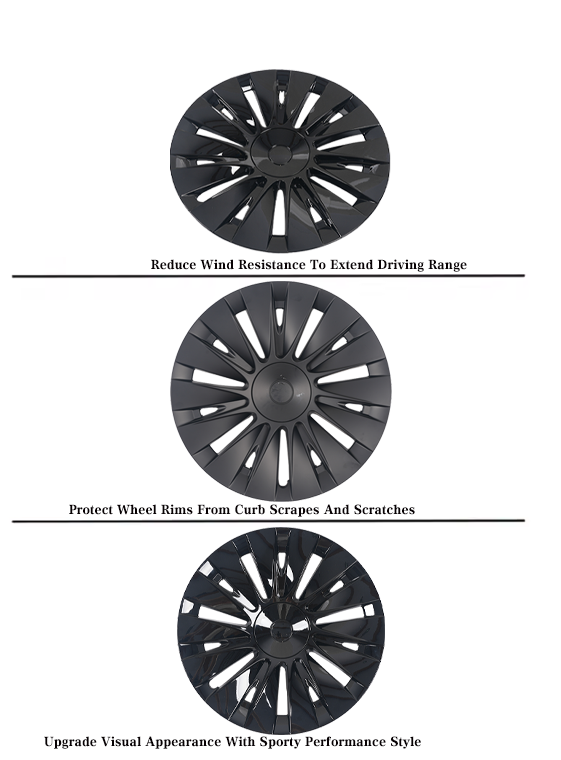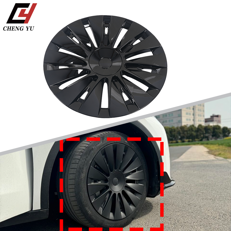 Coques de roues Aero pour Tesla Model Y 2018-2024, 19 pouces, style Uberturbine, noir mat brillant, protection de jantes, kit extérieur