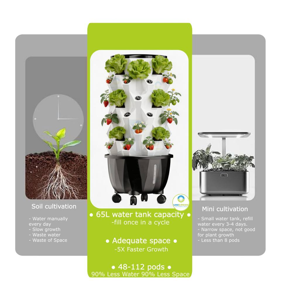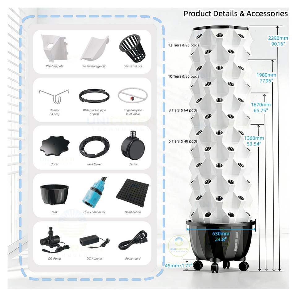 Tour de culture aéroponique, tour hydroponique multi-niveaux, 48-112 trous de plantation, pour une utilisation en intérieur et en extérieur, kit de système de culture