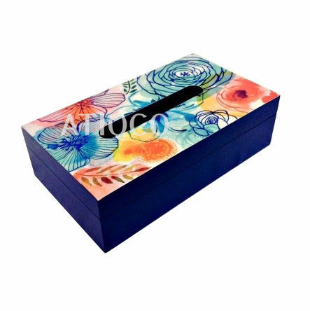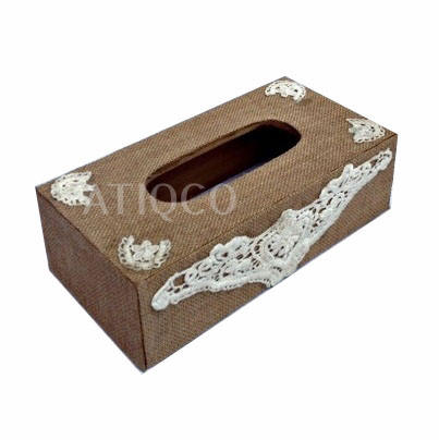 Porte-boîte à mouchoirs en bois MDF esthétique avec patch de fleurs en jute Table de rangement en bois élégante pour une utilisation sur table