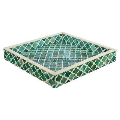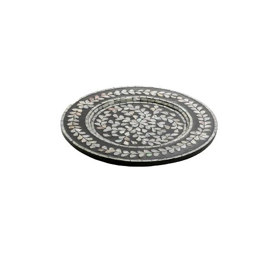 Offre spéciale Plateau de service en incrustation d'os rond fabriqué à la main à un prix abordable Plateau de service de table de comptoir de fabricant indien