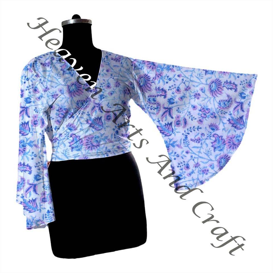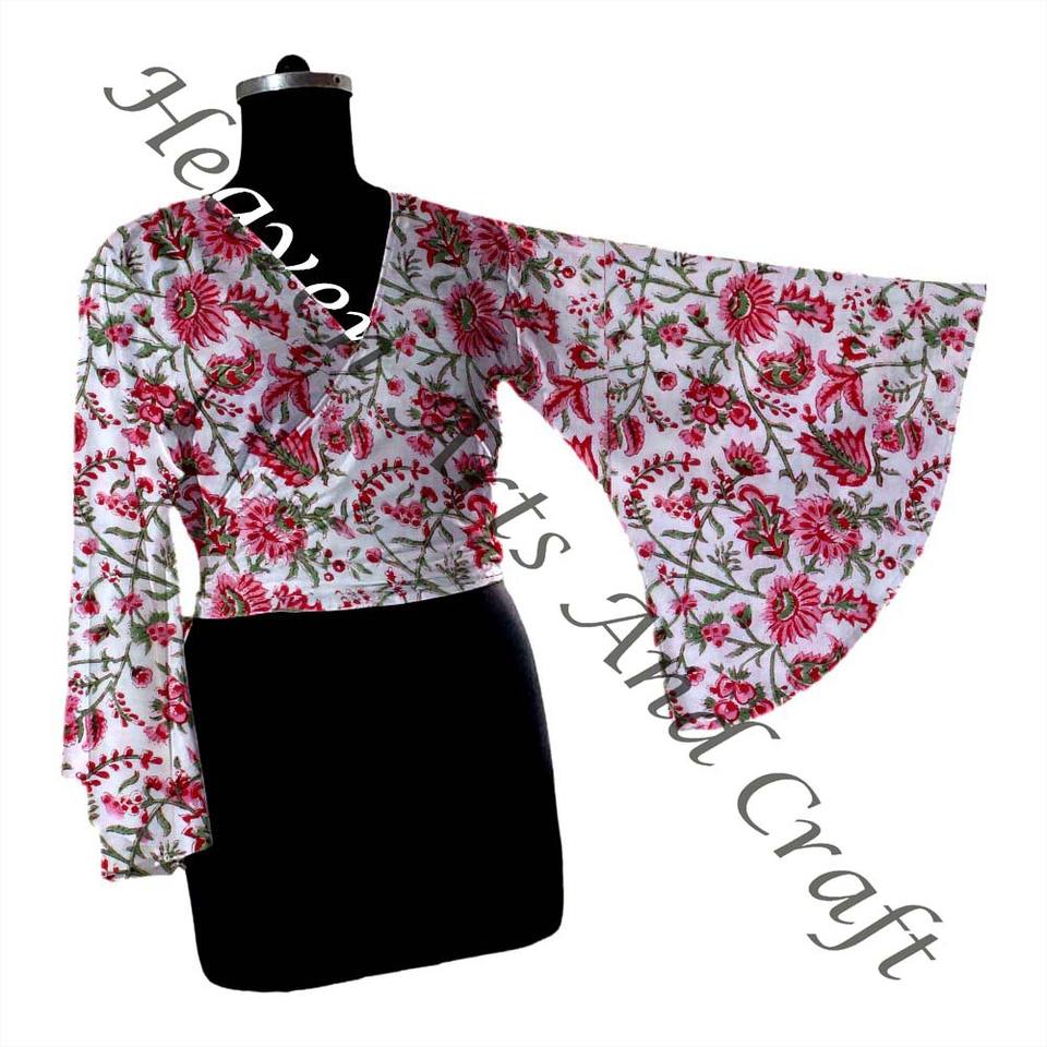 Hand Block Print Cotton Tie Tops Bell Sleeves