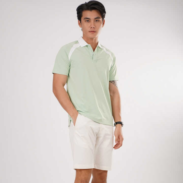 Polo Shirt with Contrast Curved Panels Down Raglans Front