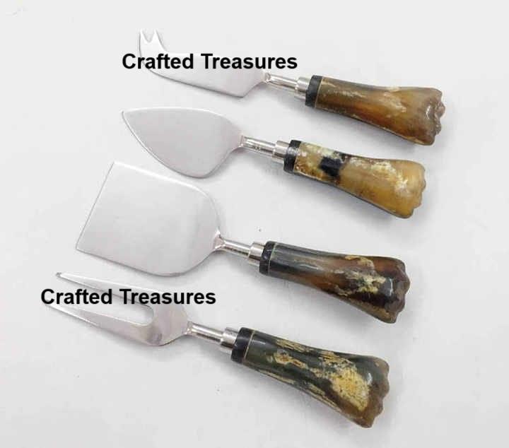 Ensemble de couteaux à fromage à prix abordable avec manche en résine bleue Cadeaux de fantaisie pour pendaison de crémaillère 3 pièces personnalisées au meilleur prix