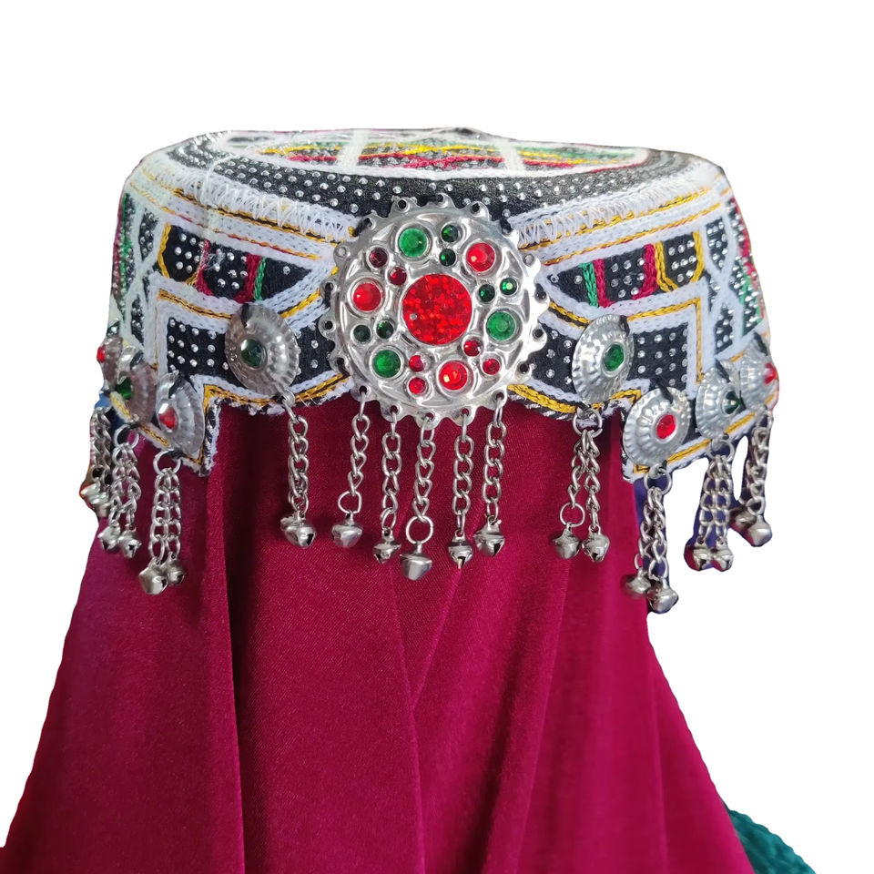 Afghani Ethnic Vintage Traditional Cap Handmade Pashtun Cultural Embroidered Flower Fabric Lightweight Eco-Friendly Headwear