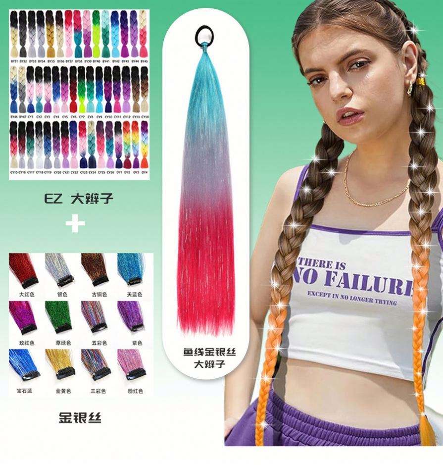 Perruque en cheveux Remy européens, tressage africain large en fil d'or et d'argent, ondulation naturelle, double trame machine, 100g, avec fil laser et élastique