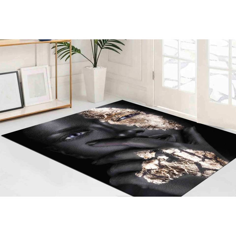 Tapis Femme Africaine Dorée : Décoration d'Intérieur d'Art Moderne, Tapis Imprimé, Tapis Doux à Poils Longs
