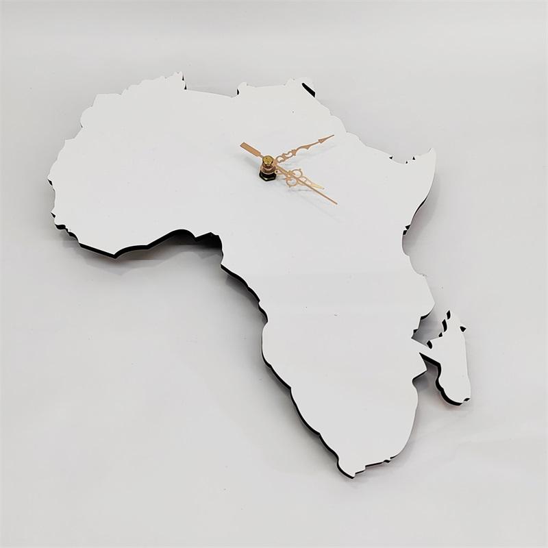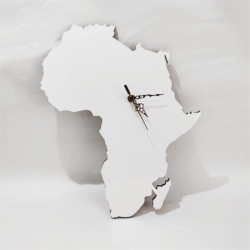 Africain carte Sublimation d'horloge Horloge Mur MDF blanc Personnalisé bois horloge afrique nigeria Offre Spéciale