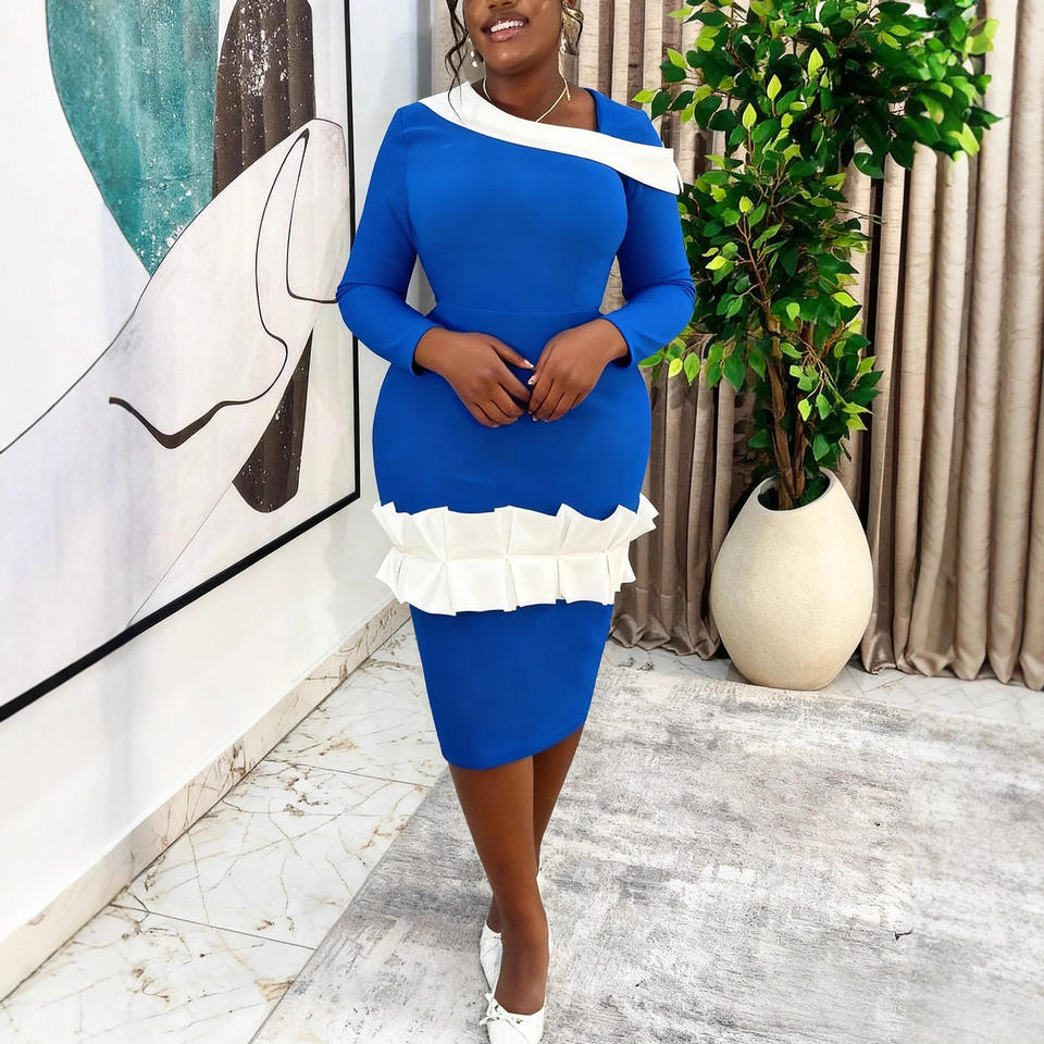 African New Long Sleeve Irregular Shoulder Strap Crash Color Women's Ruffle Party Dress Fashion