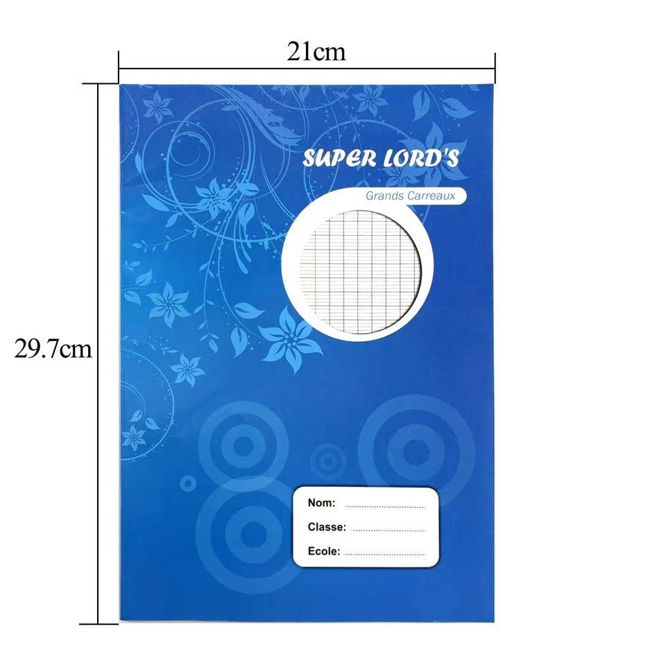 Cahier d'exercices en papier africain, ligne française, 96 pages, couverture souple, pour étudiants, personnalisable