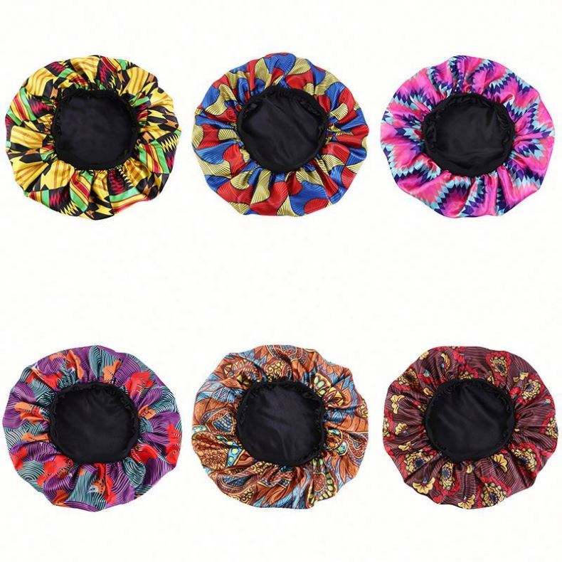 Bonnet de nuit imprimé motif africain double couche pour femme avec bande élastique en satin, idéal pour le quotidien et toutes les saisons