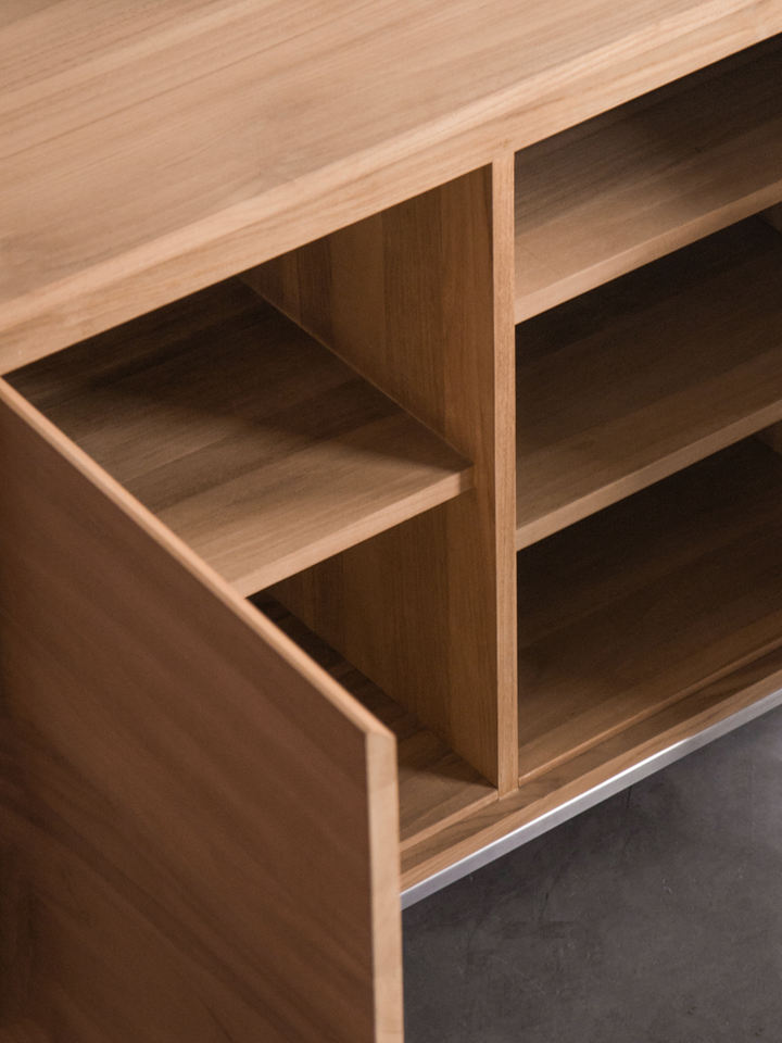 Buffet de salon multifonctionnel minimaliste en teck africain fait main avec 5+ tiroirs et compartiments, meuble de maison gain de place