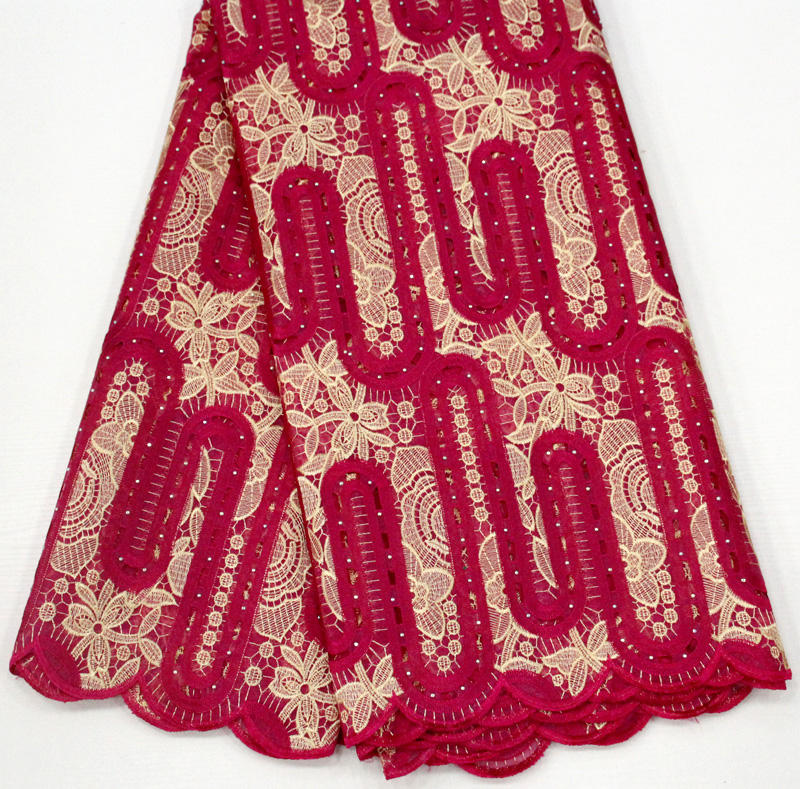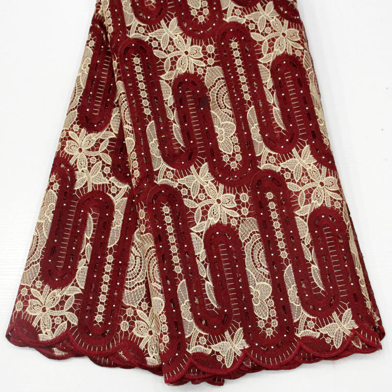 Tissu africain traditionnel ASO EBI pour fête de mariage, Double coupe à la main, paillettes rouges bordeaux
