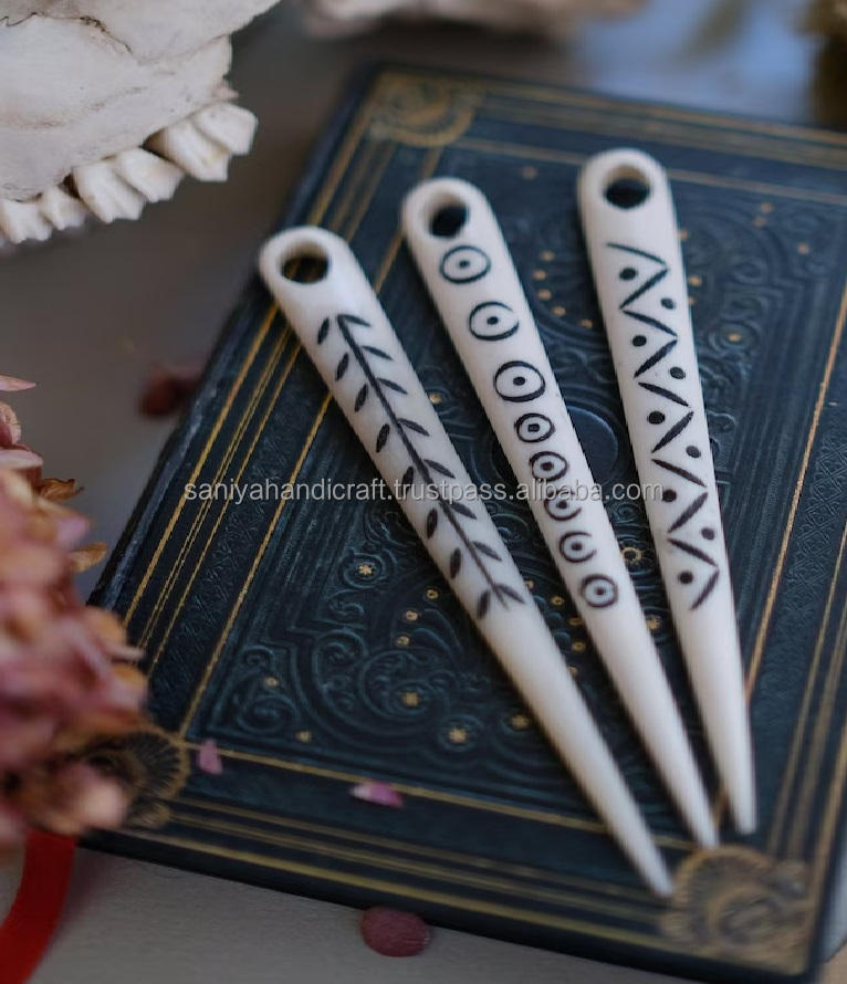 SANIYA HANDICRAFT Aiguille à tricoter en os de buffle poli 11 cm Blanc naturel pour Nalbinding/Tissage Couture Style animalier