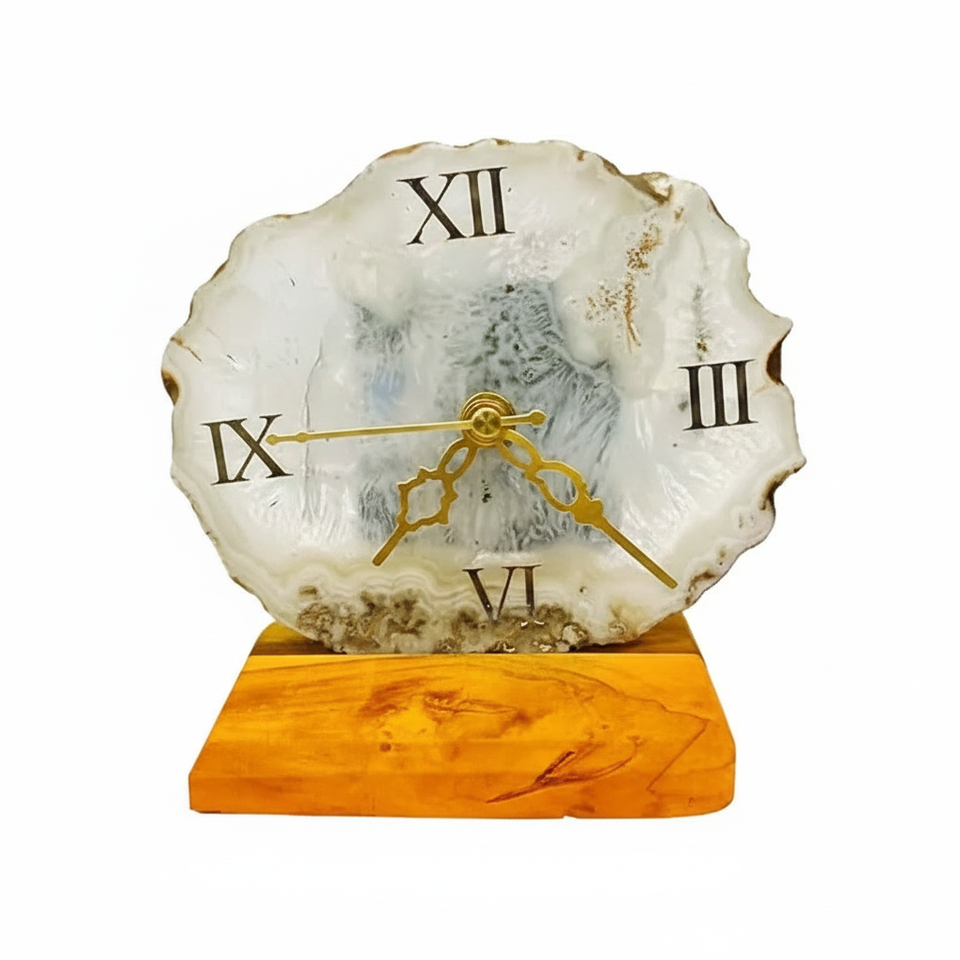 Horloge de table en pierre d'agate Horloge de table pour la maison et le bureau Articles décoratifs de table Articles de décoration intérieure antiques Horloges de bureau et d'étagère