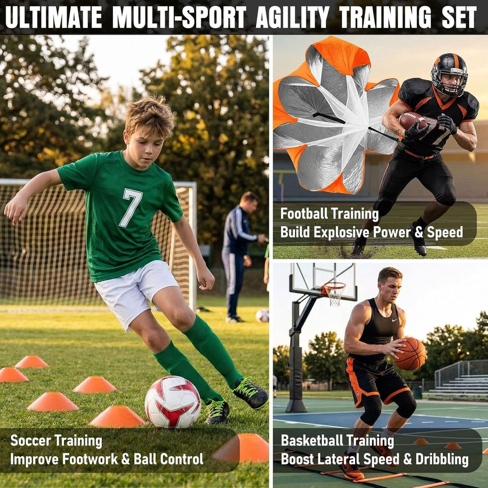 Kit d'entraînement d'agilité et de vitesse, échelle d'agilité, cônes de marquage, obstacles, parachute de course, équipement et accessoires d'entraînement de football