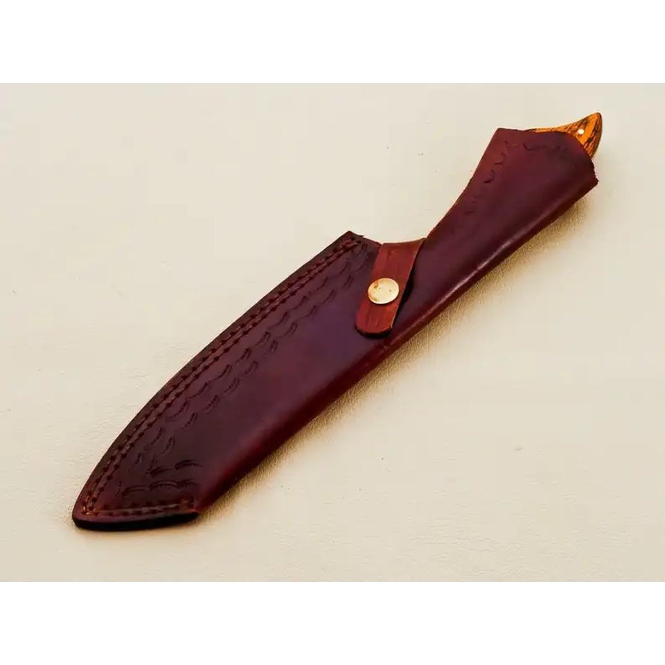Couteau de chef artisanal en acier Damas de 13 pouces, fabriqué sur mesure par Ahmad Fabric, avec étui en cuir, manche élégant, personnalisable
