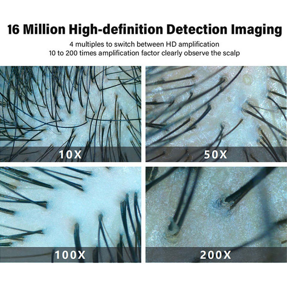 Analyseur intelligent de cheveux et de cuir chevelu Ai avec caméra HD 16Mp et zoom 10X-200X pour un diagnostic précis du follicule pileux et de la sensibilité du cuir chevelu