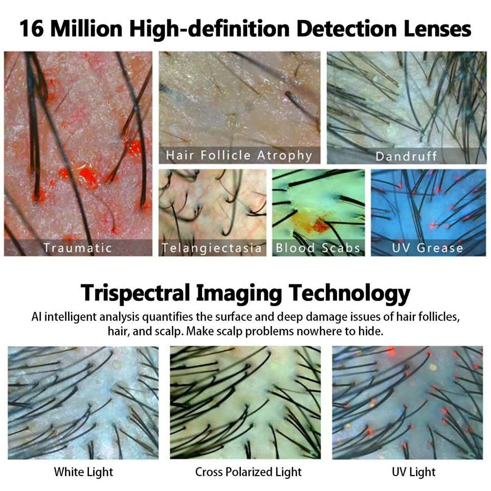 Ai, UV, RVB, Technologie d'analyse de la topographie 3d, Analyse intelligente du cuir chevelu
