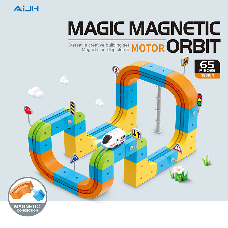 AiJH 65 pièces Cube Variety Show Train Track Anti Gravity Magnetic Train Children's Puzzle DIY Building Block Toys