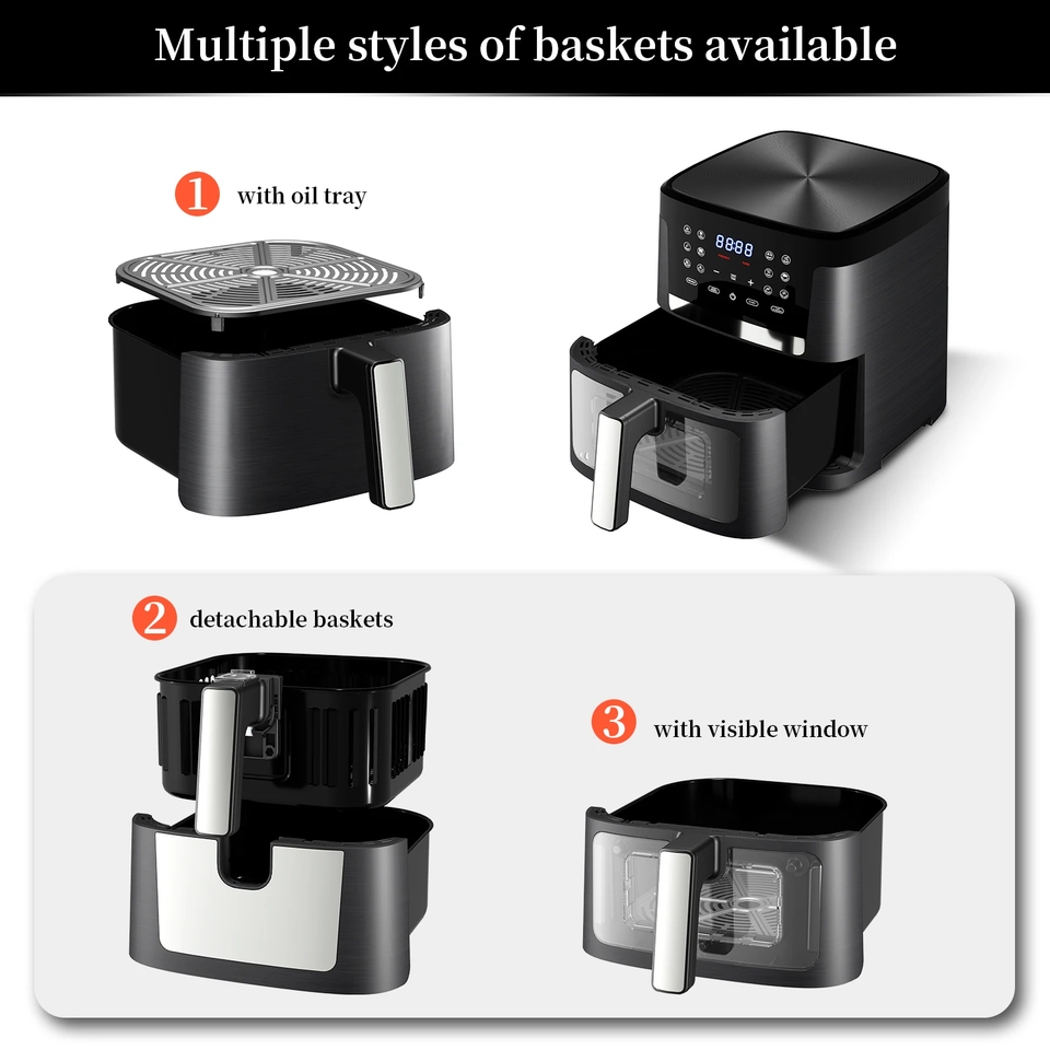 Aifa prix d'usine 5L 5.5L 6L 7L 8L acier inoxydable manuel sans huile grand écran tactile LED 360 Visible Widow friteuse à air numérique