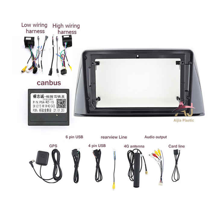 Kit de garniture de tableau de bord stéréo amplificateur DSP Aijia 10 pouces avec GPS Android Auto CarPlay et émetteur FM pour Peugeot 308 2016+