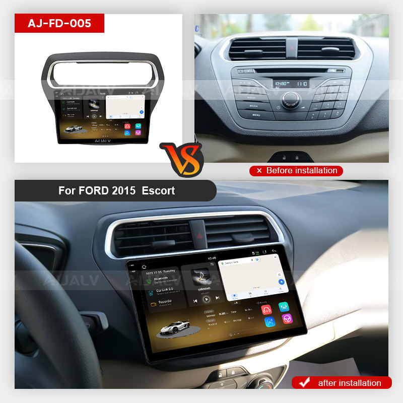 Lecteur multimédia automobile Android QLED Aijia de haute réputation pour FORD 2015 Escort, 8 cœurs, 2K, lecteur DVD radio stéréo, système de navigation GPS