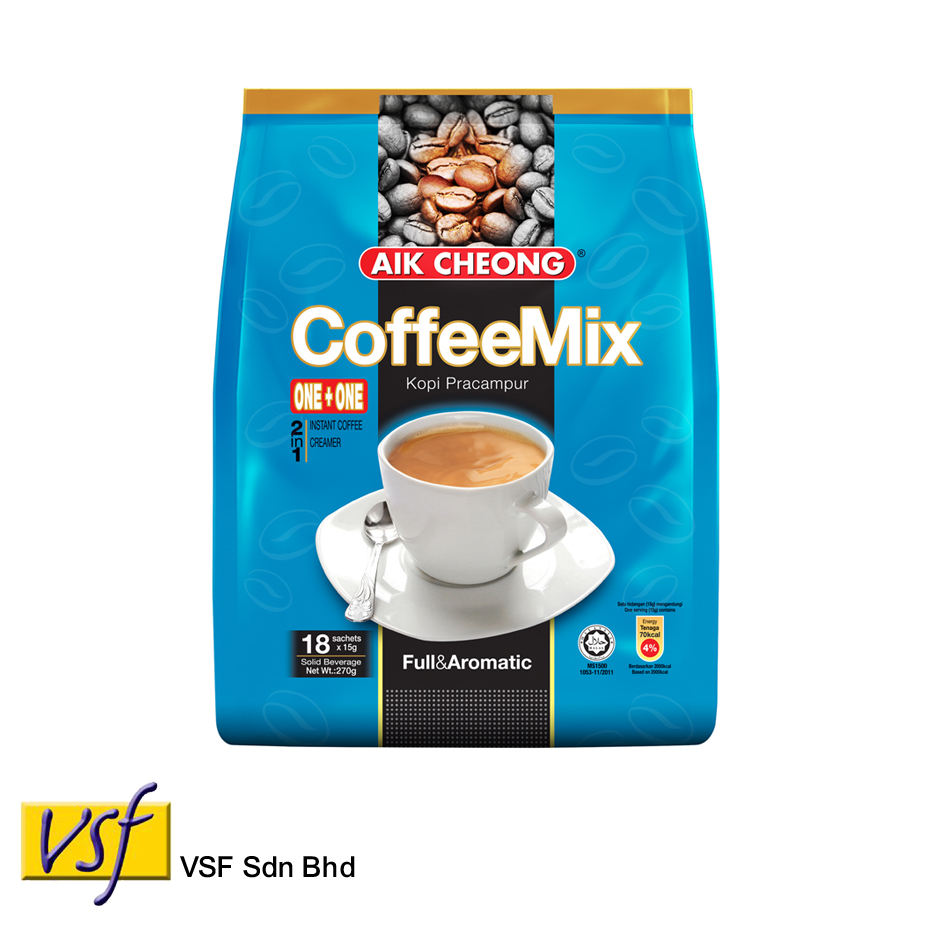 Packaging Details:AIK CHEONG 2 IN 1 COFFEE MIX est fabriqué uniquement à partir de grains Robusta et Arabica, spécialement brassés à son goût haut de gamme. Mélangé avec crémier dans des proportions bien ajustées, promet un arôme riche et robuste.