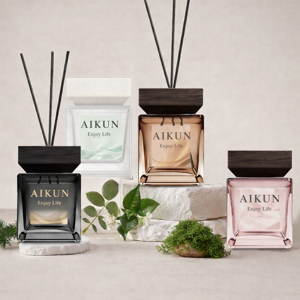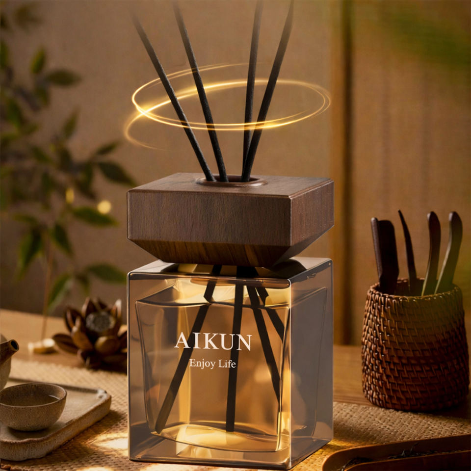 Diffuseur de parfum Aikun personnalisé 200 ml avec bâtonnets en rotin naturel, élégant assainisseur d'air pour salon et salle de bain