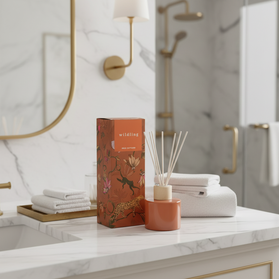 Huile essentielle naturelle, flacon premium, bâtonnets de rotin