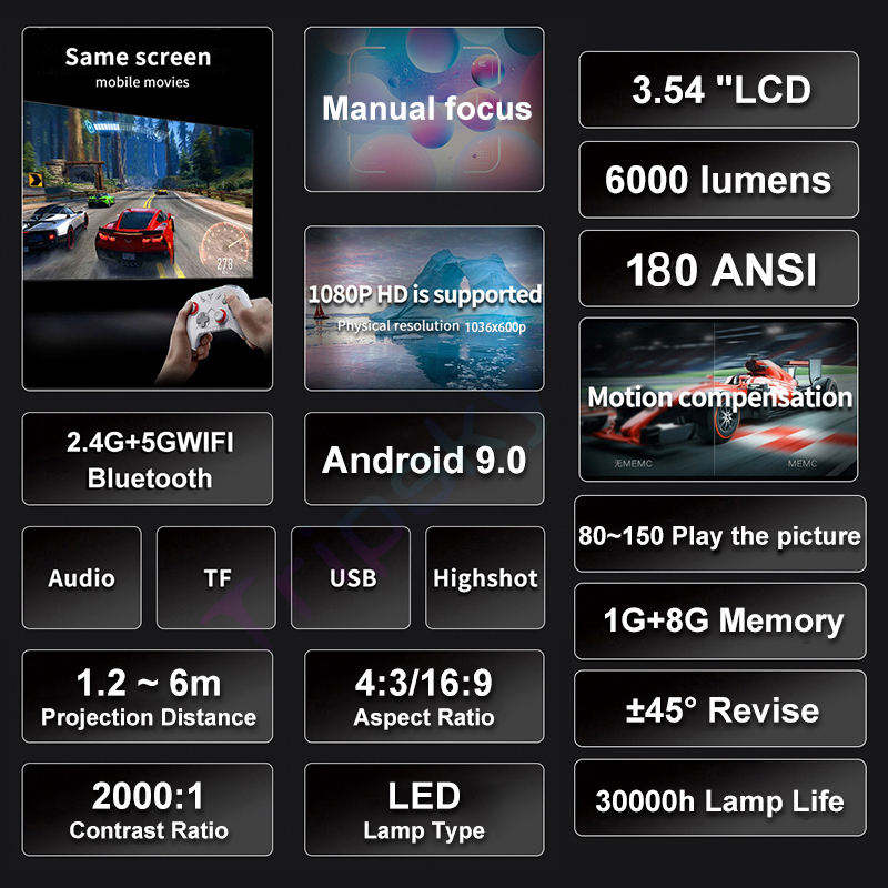 AilesTecca Smart Home Pico Cube projecteur Mini projecteur vidéo de poche Android LED DLP Portable 3D Beamer Wireless 4K Projector