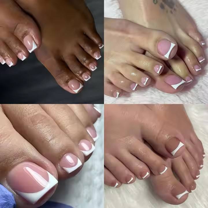 Aillsa 150pcs Press on Toe Nails Artificielle Faux Ongles Fait à la Main Court Carré Français Gel Doux Press on Foot Nail Tips