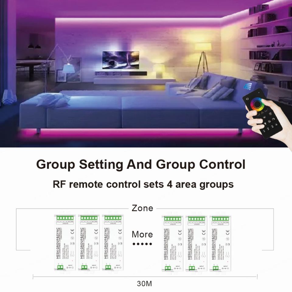 Aipin 2.4G Mesh Group Sync, contrôle de 4 zones, bande LED RGBCCT 48V, contrôleur de gradation PWM sans fil 2.4GHz, contrôle par application, 720W max