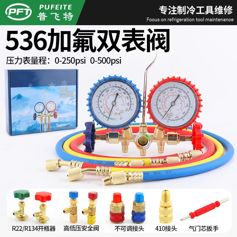 Kit de manomètre de pression pour climatiseur R134a, ensemble de tuyaux de charge de réfrigérant à double manomètre CT-536, manomètre de précision pour voiture et usage domestique