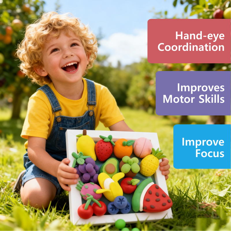 Kit de loisirs créatifs en argile auto-durcissante pour cadre photo, thème fruits, non toxique, sans cuisson, sûr pour les enfants, personnalisable, jouet éducatif, cadeau
