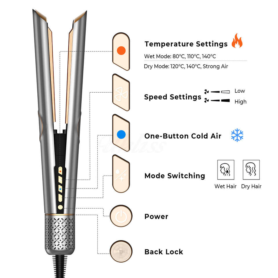 Sèche-cheveux à air froid à haute vitesse, lisseur à air chaud, prise FCC, affichage LED personnalisé, lisseur à cheveux